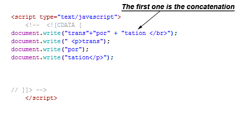 Script document.write("trans"+"por" + "tation"); Snap Shot.